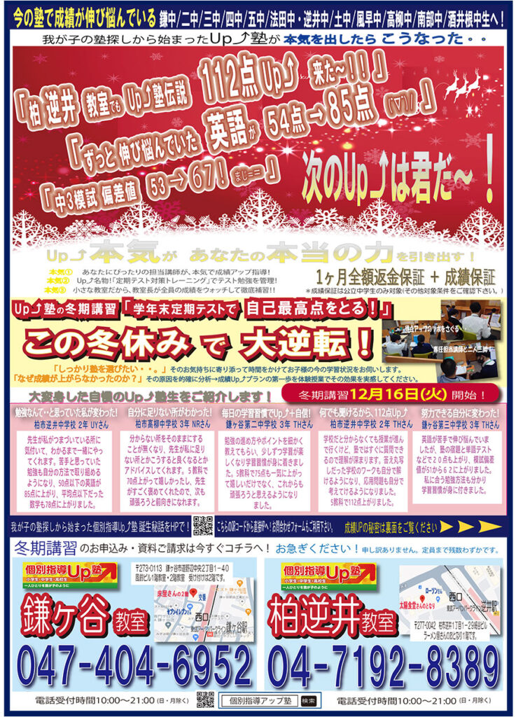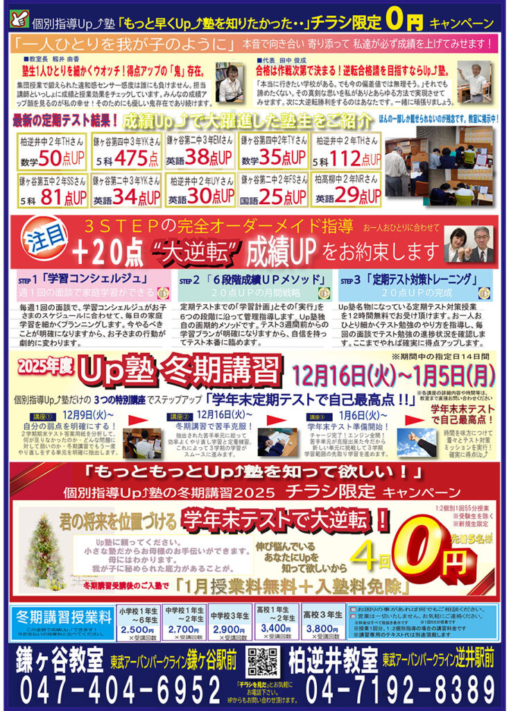 Up塾で20点Upを確実に!この冬を羽ばたく冬にしませんか?!
